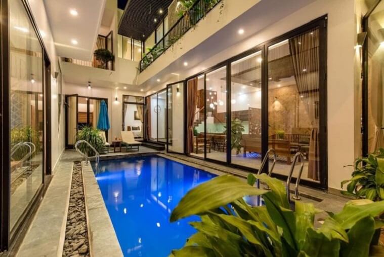 Đây chắc chắn nằm trong những Villa có hồ bơi riêng Hội An đẹp nhất mà du khách không nên bỏ lỡ khi du lịch nghỉ dưỡng ở nơi này. Lối kiến trúc độc đáo và đẹp mắt, đầy đủ nội thất sang trọng, tiện nghi, cùng bể bơi rộng rãi ngay bên dưới để du khách thỏa thích bơi lội.