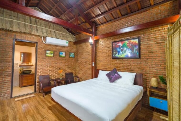 Phòng rộng đẹp và rất tiện nghi. Các phòng ngủ được trang bị nội thất đầy đủ, thiết kế sang trọng và trang nhã, wifi cũng được cung cấp free toàn khu và nhà hàng sẵn sàng phục vụ bữa ăn sáng, trưa, tối cho du khách có nhu cầu. Ở đây 2 hoạt động đi xe đạp và câu cá khá phổ biến, bạn có thể dành thời gian để tham gia nó hoặc chạy xe đến những địa điểm du lịch Hội An nổi tiếng.