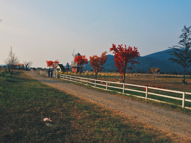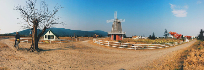 Với những chiếc cối xay gió đặc trưng, những ngôi nhà nhỏ được bao bọc bởi khu vườn cùng dãy hàng rào sơn màu trắng, cánh đồng cỏ mênh mông hay những chiếc xe ô tô đời cũ nhưng chất vẫn chạy dọc khắp con đường đất... đã được "bê" tới và đặt ngay giữa Đà Nẵng, mang lại 1 background chụp hình chất đừng hỏi.