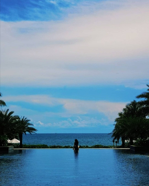 Với thiết kế tràn nước hướng ra biển qua những rặng dừa cao vút, resort 5 sao này là chính là nơi hoàn hảo để ngâm mình trong nước, tắm nắng và lắng nghe tiếng rì rào của biển khơi. Ngoài ra, ngay cạnh hồ bơi là một quầy bar, sẵn sàng cung cấp cho du khách những ly cocktail mát lạnh để nhâm nhi ngày hè.