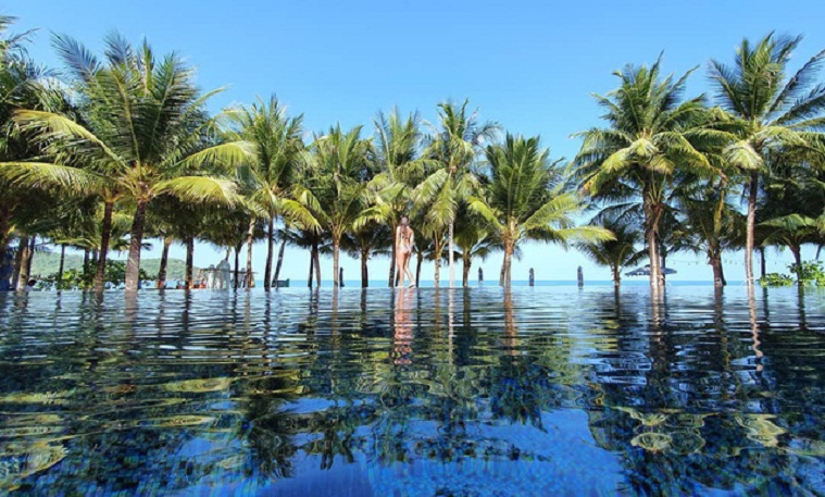 Bên cạnh biển xanh cát trắng đẹp đến nao lòng người, Phú Quốc còn sở hữu những resort 5 sao đẳng cấp nhất Việt Nam, dễ dàng làm hài lòng bất kỳ du khách nào. Điểm chung của những nơi này là hệ thống hồ bơi vô cùng độc đáo với view biển xanh trải dài đến tận chân trời, hứa hẹn đem lại những góc chụp đẹp cho bạn.