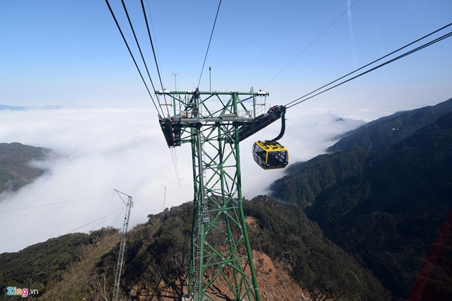 Cáp treo Bà Nà được đánh giá là hệ thống cáp treo tốt nhất Việt Nam, cũng là cáp treo nhận được 4 kỷ lục thế giới, gồm: dài nhất, 5.801m; độ chênh lớn nhất, 1.368m; tổng chiều dài cáp dài nhất, 11.587m; sợi cáp nặng nhất, 141,24 tấn. Ảnh: Anh Tuấn.