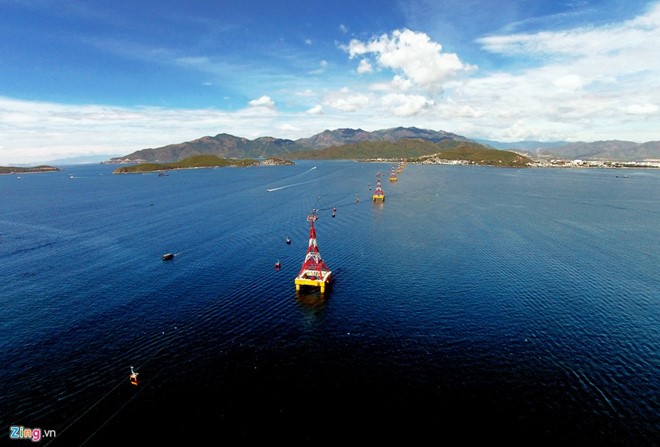 Cáp treo Vinpearland nối TP Nha Trang và đảo Hòn Tre được đánh giá là hệ thống cáp treo dài nhất Việt Nam và thế giới ở thời điểm hiện tại. Ảnh: Nam Nguyễn.