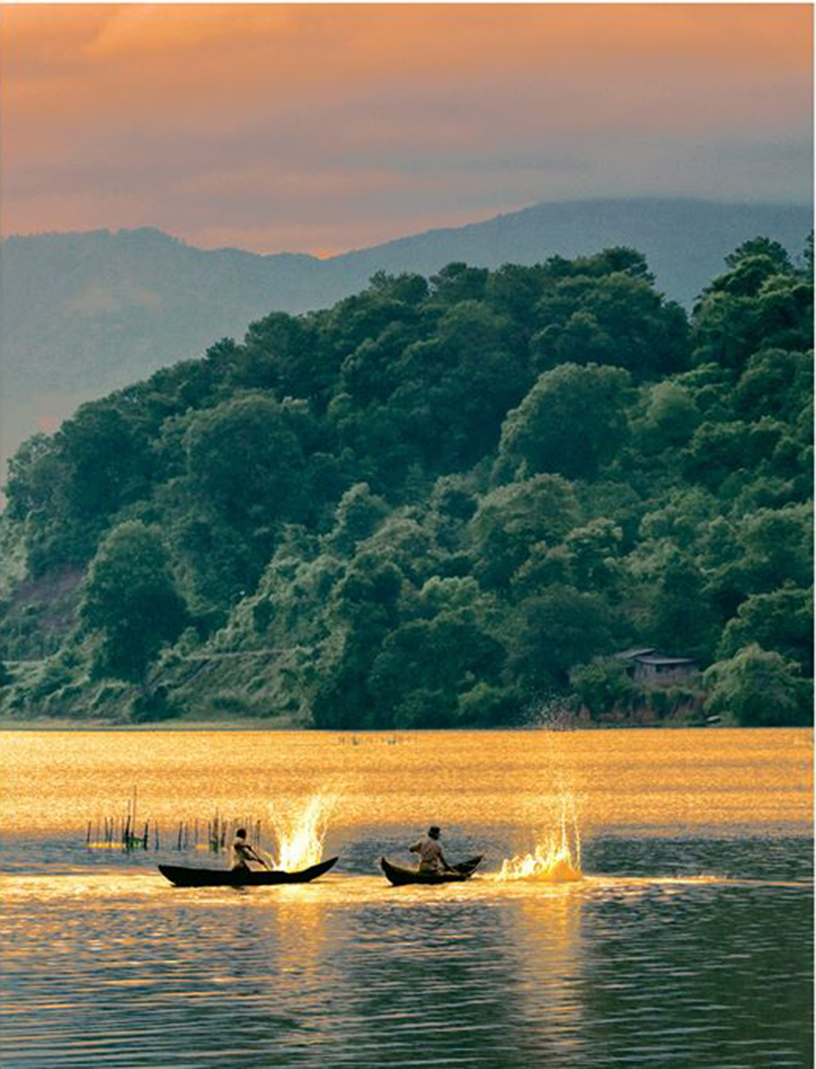 Hoàng hôn buông bên hồ Lắk – Ảnh: Lư Quyền