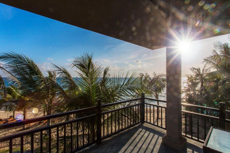 Một căn biệt thự có hồ bơi riêng nằm ngay cạnh bãi biển xanh mát với phòng ngủ có 01 giường cỡ đại dành cho 2 người với diện tích 60m2 liệu có làm bạn xuyến xao? Phòng nằm trong căn villa có nội thất sang trọng và đẳng cấp nhất, phía trước mặt là hồ bơi ngoài trời nằm trong khuôn viên vườn và kế bên cạnh là bãi cát vàng rực cùng tiếng sóng vỗ rì rào chắc chắn sẽ đốn gục trái tim bạn đấy nhé!