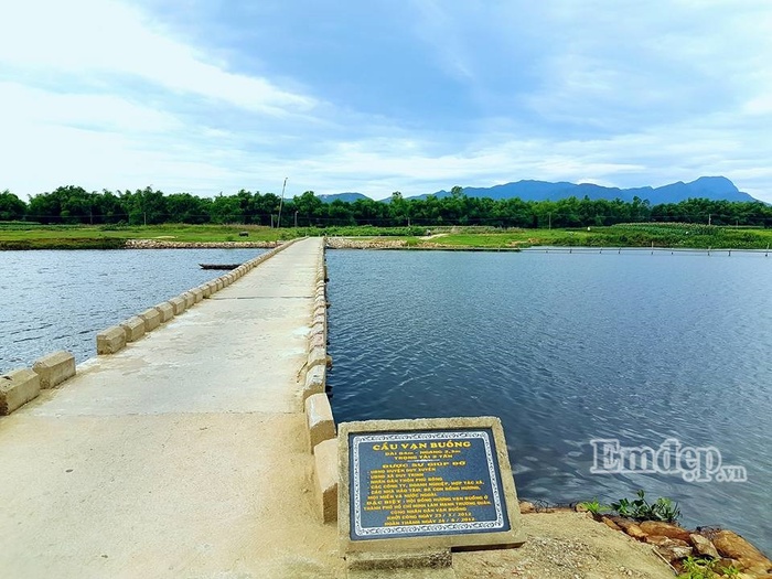 Cây cầu được bắt ngang một nhánh sông Thu Bồn, nước sông ở khu vực này nông, nhưng có rất nhiều cá. Men bờ sông là bãi cỏ xanh rì đẹp như tranh thủy mặc, thích hợp cho việc cắm trại trong dịp nghỉ cuối tuần.