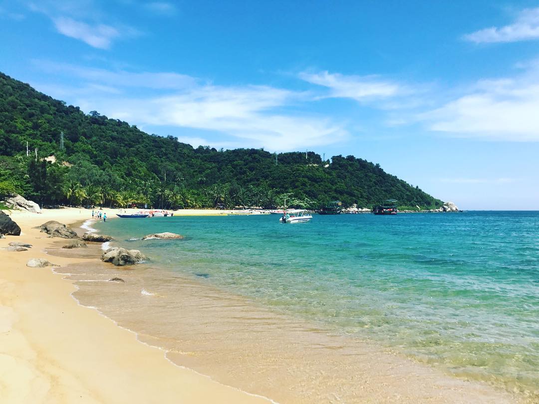 Cù Lao Chàm nhuốm màu như một thiên đường cổ tích, nước biển xanh trong đến mức nhìn rõ từng cọng rong chơ vơ dưới tầng tầng lớp nước. Những phiến đá nằm rải khắp dọc đường đi, bãi cát trắng như những bờ bao mềm mại, ôm lấy cả biển nước trải dài bất tận.