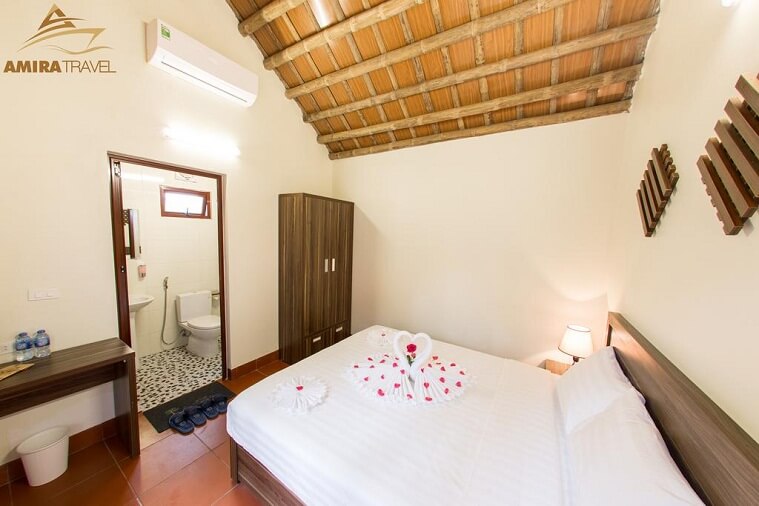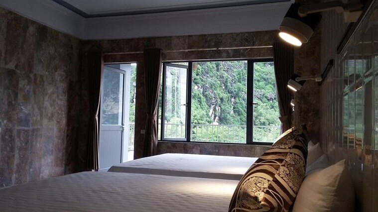 Mỗi phòng ngủ tại đây đều có 2 giường nhưng chỉ được tối đa 3 người ngủ. Tuy nhiên, tất cả các phòng ngủ đều có sân hiên hướng ra phía núi, giúp khách du lịch vừa ngắm trọng khung cảnh núi rừng tại Ninh Bình vừa thư giãn.