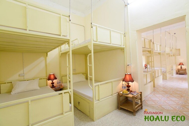 Dạng phòng dorm hiện đại hơn, với giường 2 tầng và chỗ đựng đồ ở dưới.