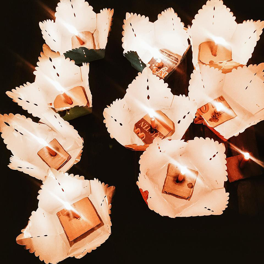 Thả đèn hoa đăng trên sông vào buổi tối. Mỗi đèn 5k còn thuyền đi trên sông 50-60k.