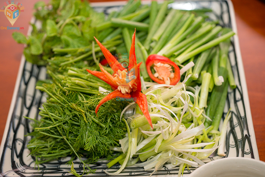 CHẢ CÁ LÃ VỌNG được ăn với loại rau rất riêng: hành lá, thì là và rau thơm (hung láng) chứ không phải rau sống như ăn các món khác. Khi ăn, chảo cá được đặt lên bếp (ở quán dùng loại bếp điện rất gọn và sạch sẽ), bạn chỉ cần cho tý dầu vào và xào xào qua cho rau chín. Màu xanh tươi của rau hòa quyện với mùi thơm nứt của cá, bỏ vào chén, cho thêm tý bún, mắm tôm và lạc (đậu phụng) trộn đều lên…thì thôi ngon không gì bằng.