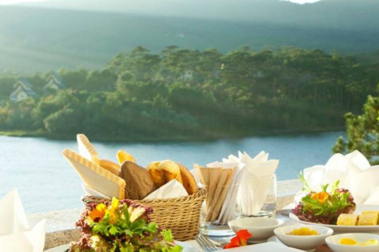 Một không gian tuyệt vời để bạn có thể thưởng thức món rượu vang trắng Riesling nổi tiếng của vùng Tây Đức trong khung cảnh hồ nước Tuyền Lâm trong veo và rừng thông vi vu tiếng gió cực lãng mạn. Không chỉ có đồ uống ngon, nhà hàng còn có muôn vàn những set đồ ăn mang phong cách ẩm thực châu Á hoặc châu Âu cho thực khách lựa chọn với giá cả hấp dẫn không ngờ.