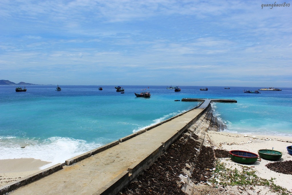 Một vài chiếc thuyền nhấp nhô gần bên cầu cảng đảo Bé - Ảnh: Le Quang Bao