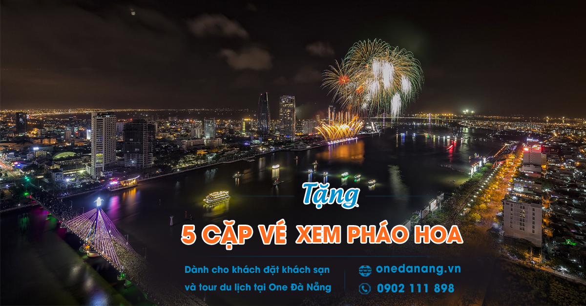 Tất cả khách đặt phòng khách sạn và tour Du lịch tại One Đà Nẵng dịp Lễ hội pháo hoa Quốc tế Đà Nẵng 2019 từ 01/06 đến 06/07/2019 có cơ hội nhận 5 cặp vé xem pháo hoa quốc tế.