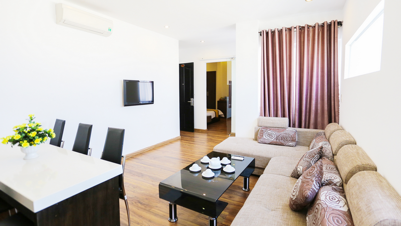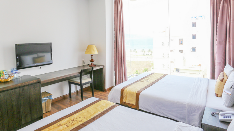 Nội thất trong phòng cũng được được thiết kế và sắp đặt rất tinh tế, sàn phòng ngủ được áp gỗ thiên nhiên sang trọng, phòng tắm được áp đá cao cấp, trang bị đầy đủ tiện nghi sinh hoạt và giải trí: giường ngủ êm ái, ti vi, máy điều hòa, truyền hình cáp, bình nước nóng, hệ thống đèn chiếu sáng, máy sấy tóc, bàn trang điểm, bàn làm việc…