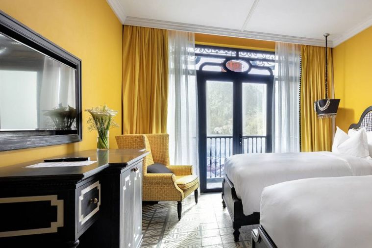 Phòng với diện tích 33m2 được thiết kế tinh tế với màu sơn vàng mù tạt đem lại cảm giác căn phòng luôn tươi sáng. Được bố trí 2 giường đôi và trang trí bằng những bức tranh nghệ thuật với tượng sáp làm cho căn phòng nhìn mê hoặc và quyến rũ. Nội thất được sử dụng màu đen lấy ý tưởng từ những hoa văn trên trang phục của người dân tộc tại Tây Bắc kết hợp với hơi hướng cổ điển của phương đông.