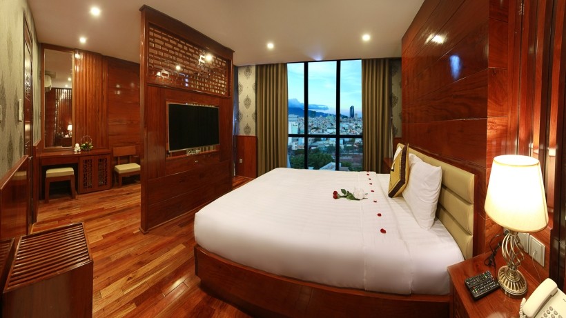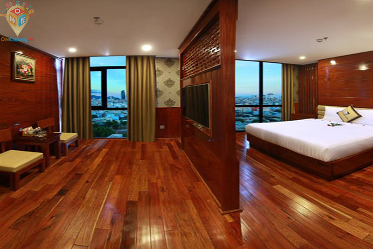 Nội thất chủ đạo của khách sạn là gỗ tự nhiên & trang thiết bị hiện đại với cách bài trí hài hòa tạo nên sự tiện nghi, sang trọng, thanh lịch, bố cục không gian để đón ánh sáng và lấy gió tự nhiên từ ven bờ biển Nguyễn Tất Thành.