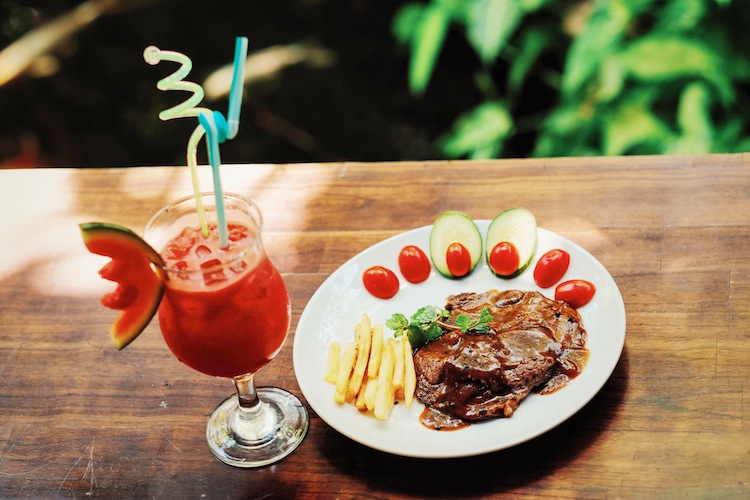 Combo bò bít tết và nước trái cây