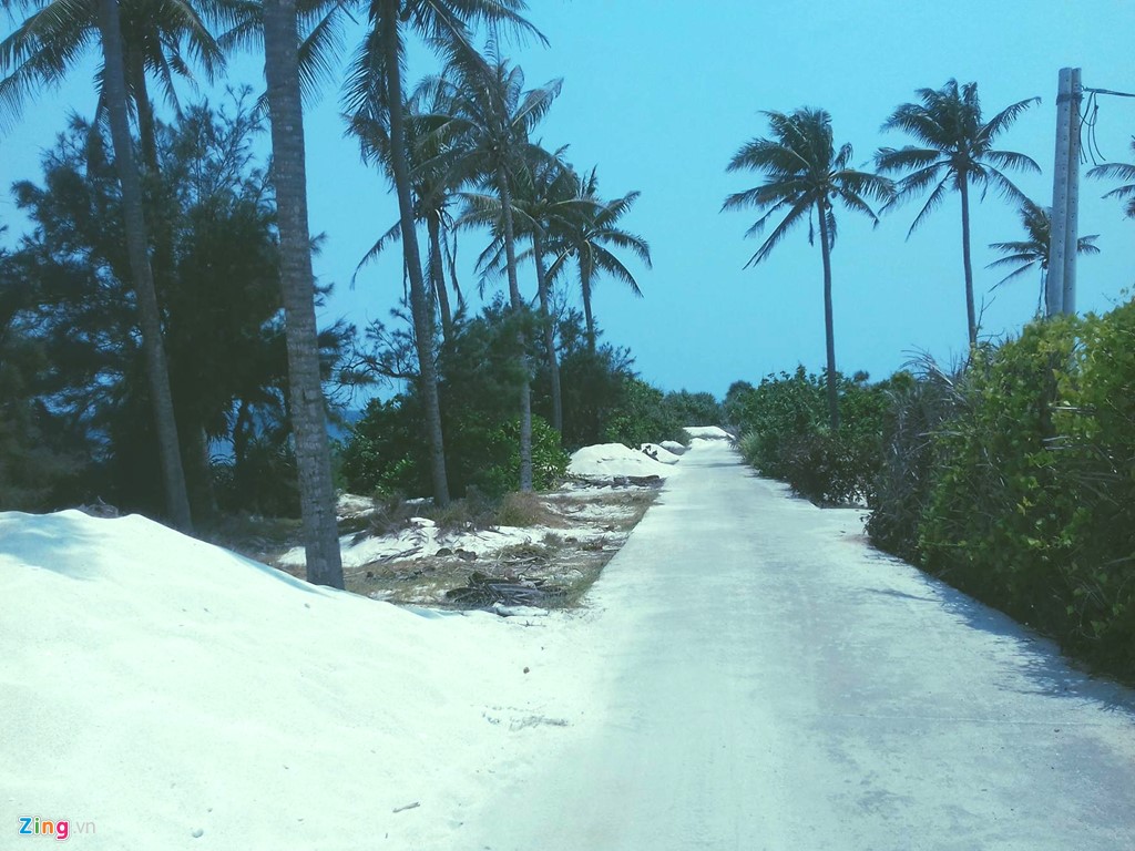 Con đường độc nhất ở đảo Bé với những hàng dừa xanh mát.