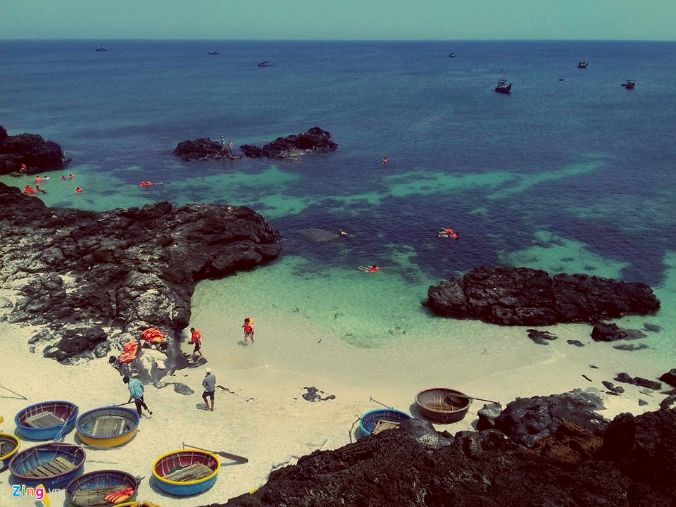 Đảo Lý Sơn, hay còn gọi là Cù Lao Ré, vốn là một miệng núi lửa đã tắt, có sức hút vô cùng mãnh liệt đối với bất cứ ai đam mê du lịch và thích khám phá. Trong hình là tàu bè của ngư dân neo đậu ở cảng, phía dưới là làn nước trong veo.