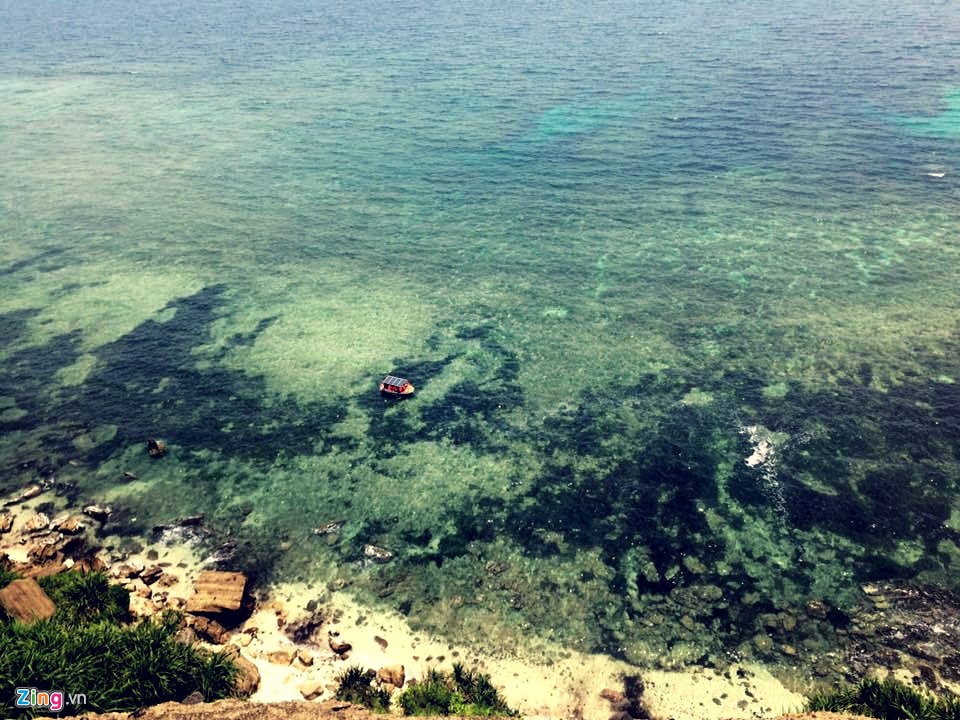 Khung cảnh hùng vĩ với những rạn san hô và tảo biển nhìn từ đỉnh Thới Lới.
