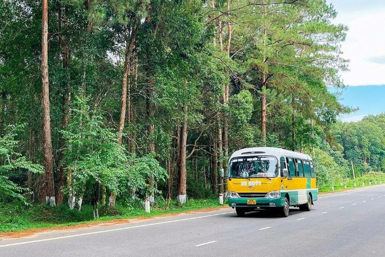 Con đường nhựa đâm xuyên rừng thông Măng Đen, có những cây thông đã có được từ rất lâu, sừng sững và cao vút làm lay lòng người.