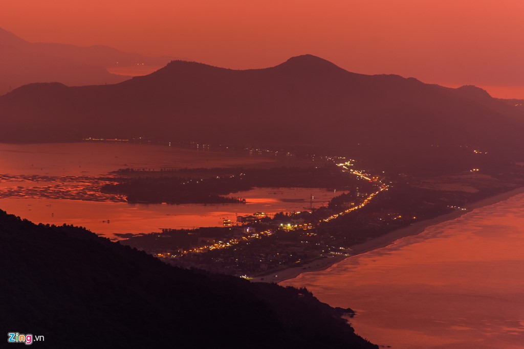 Màn đêm buông xuống, từ đỉnh Hải Vân du khách có thể ngắm toàn cảnh vịnh Lăng Cô hoặc TP Đà Nẵng về đêm.