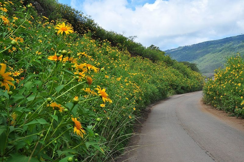 Đà Lạt thì đã quá nổi tiếng với vô số địa danh như nhà thờ Con Gà, dinh Bảo Đại, ga Đà Lạt, hồ Xuân Hương, chợ đêm Đà Lạt... Và những cung đường có hoa dã quỳ đẹp nhất được cho là cung đường thành phố đi sân bay với hai bên đường vào sân bay có hoa dã quỳ mọc theo từng dãy vàng rực một góc trời; Cung đường đi Trại Mát - Cầu Đất với hoa dã quỳ nở trong cảnh bao la hùng vĩ của núi rừng cao nguyên...