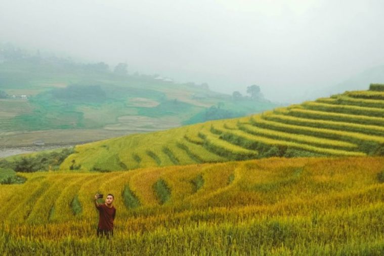 "Thị trấn sương mù" Sa Pa xưa nay đã là một thị xã và có tuyến đường cao tốc mới giúp quãng đường từ Hà Nội đến đây được rút ngắn. Tháng 9 là mùa lúa chín vàng ở Sa Pa, những bậc thang bỗng xinh như những thác nước óng vàng. Sa Pa vào vụ thu hoạch như tô điểm thêm cho vẻ đẹp thanh bình và hoang sơ vốn có.