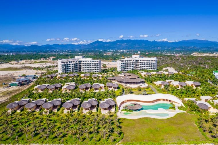 có bãi biển riêng cách resort chỉ vài bước chân, không gian lý tưởng dành cho các chuyến nghĩ dưỡng.
