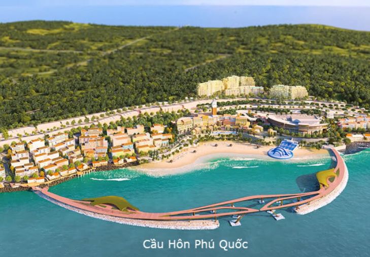 Phối cảnh cầu Hôn Phú Quốc tại trung tâm thị trấn Địa Trung Hải