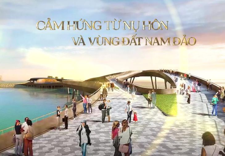 Chính tại nơi đây sẽ là nơi Chàng và Nàng đến với nhau, chạm môi vào nhau trao nhau những nụ hôn nồng cháy dưới ánh hoàng hôn đỏ rực, và cầu “Hôn” chính là biểu tượng cho tình yêu vĩnh cửu. Phía sau hai nhân vật chính là khoảng không gian rộng lớn được thiết kế để họ hàng, gia đình, bạn bè 2 bên cùng chứng kiến và lưu giữ lại những video hay tấm hình về thời khắc trọng đại này.