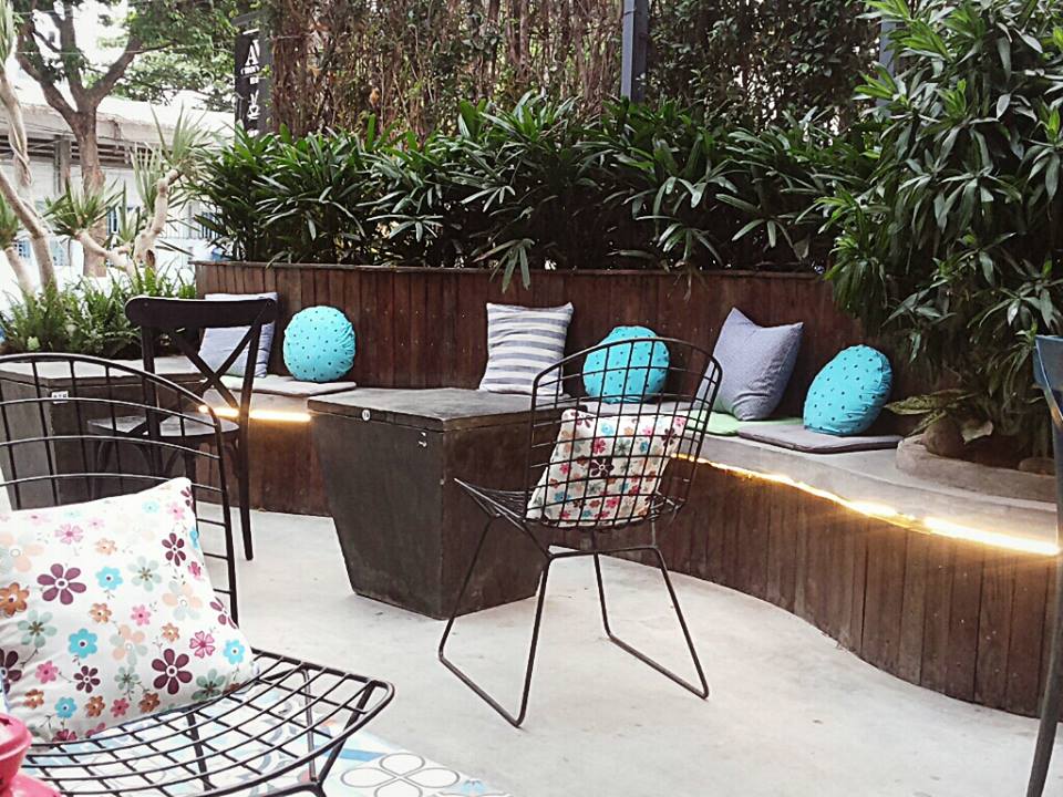 Khu vực ban công luôn là điểm đặc sắc nhất khi bạn có thể ngắm cây cảnh xung quanh, quanh cảnh thành phố, dòng xe đi đi lại lại trên đường, tận hưởng không khí thoáng đãng,… thật thú vị. Điểm trừ là khá nhiều muỗi vào buổi tối khi ngồi bên ngoài.