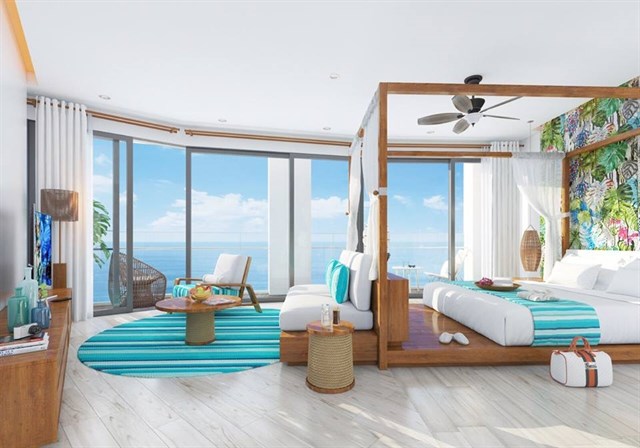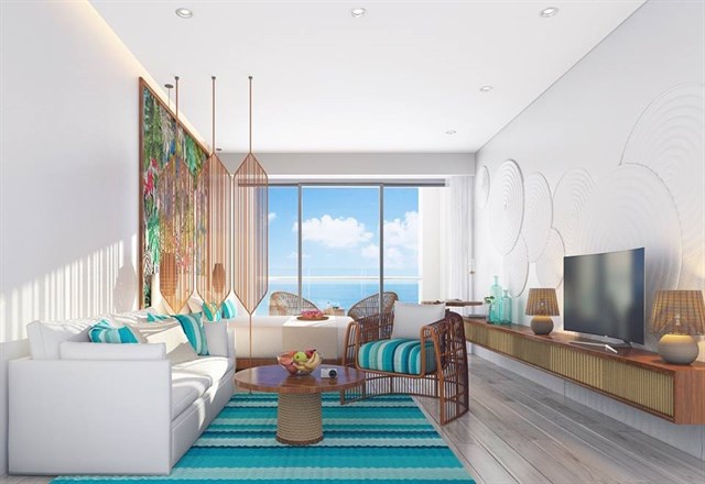 Khác với nhiều bể bơi trong những khách sạn, resort khác, chủ đầu tư Panorama Nha Trang sử dụng nguồn nước mặn để khách hàng có cảm giác như đang thư giãn giữa biển khơi cát trắng.