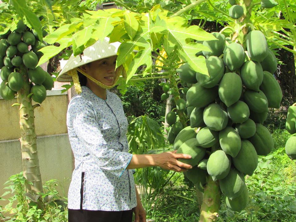 Hái rau từ vườn nhà