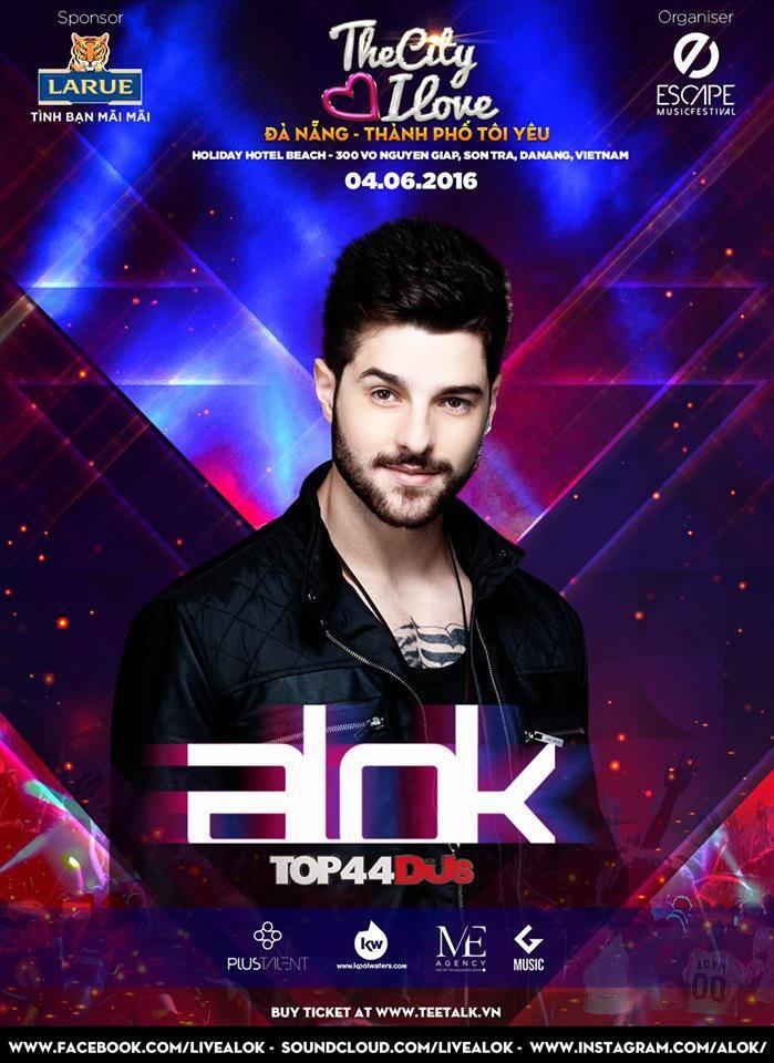 Hơn 10 ngàn Ravers Đà Nẵng sẽ có cơ hội gặp anh chàng Alok Petrillo – DJ top 44 thế giới trong bảng xếp hạng DJMag 2015 tại đêm nhạc điện tử EDM lớn nhất Đà Nẵng, diễn ra trong khuôn khổ chương trình “Đà Nẵng – Thành phố tôi yêu” (THE CITY I LOVE) ngày 04/06/2016 sắp tới.