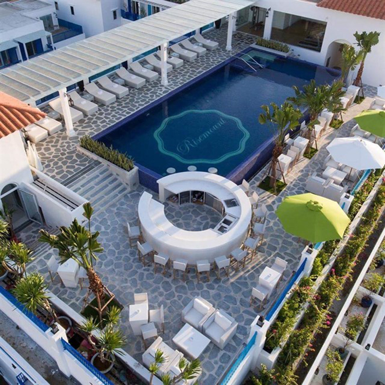 Khu nghỉ dưỡng Risemount có 103 phòng với 7 loại phòng và mỗi loại phòng đều mang một phong cách hoàn toàn riêng biệt và đa phần đều có ban công với giàn hoa giấy rực rỡ. Ngoài ra, còn có nhiều không gian khác như: spa, gym, café bar, nhà hàng, hồ bơi…