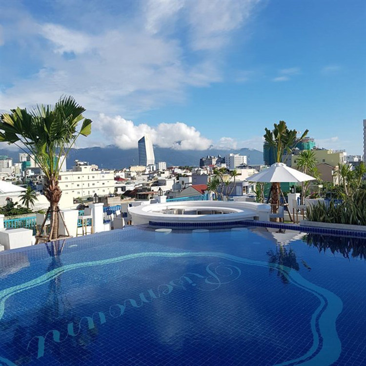 Khu hồ bơi tầng thượng thoáng đãng, vị trí thuận lợi cách biển vài phút.