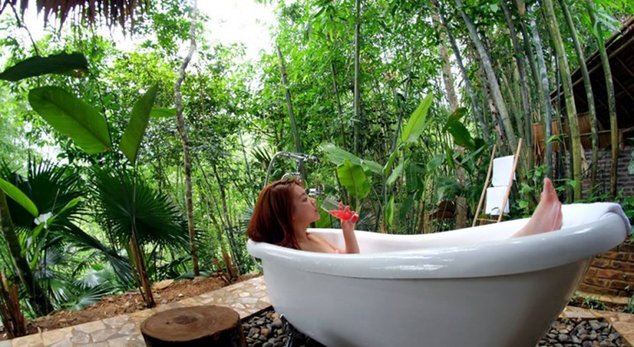 Với phòng tắm tiên, du khách có thể thoải mái thư giãn giữa thiên nhiên trong lành tại PuLuong Retreat