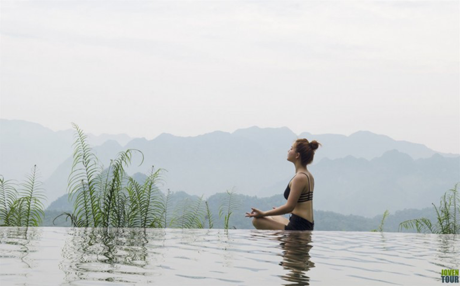Ngay khi ở bể bơi, bạn cũng có thể thư giãn tuyệt đối với thiên nhiên