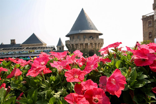 Bên những tòa lâu đài kiến trúc Âu châu cổ kính, những mái vòm cung của thánh đường như cổ tích, một Bà Nà Hills trong khói sương huyền ảo của xứ ngàn mây quyến rũ và tươi mới từng ngày với hàng trăm loài hoa đua sắc.