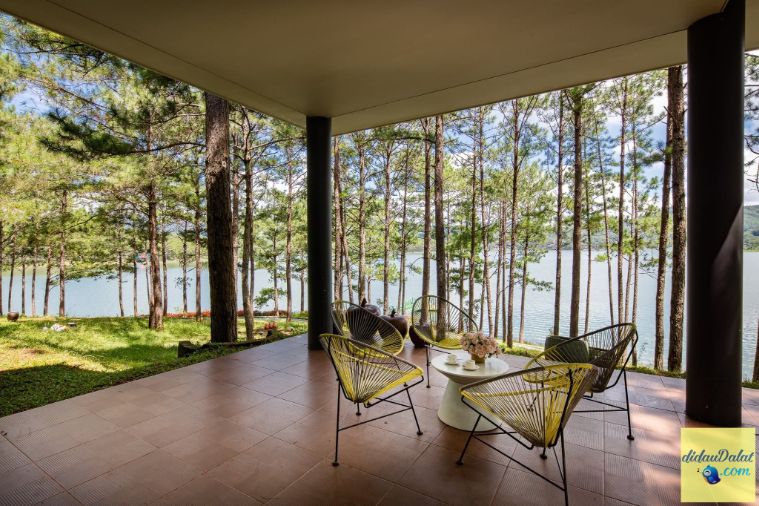 Với diện tích khoảng 350m2, căn biệt thự chia thành 2 tầng nhà cũng với 5 gian phòng ngủ rộng rãi với hệ thống cửa kính trong suốt khiến cho không gian trong ngoài xanh mướt, tự nhiên khiến cho khách lưu trú cảm nhận được thư thái,thảnh thơi và bầu không khí trong veo, mát lành nhất từ hồ Tuyền Lâm.