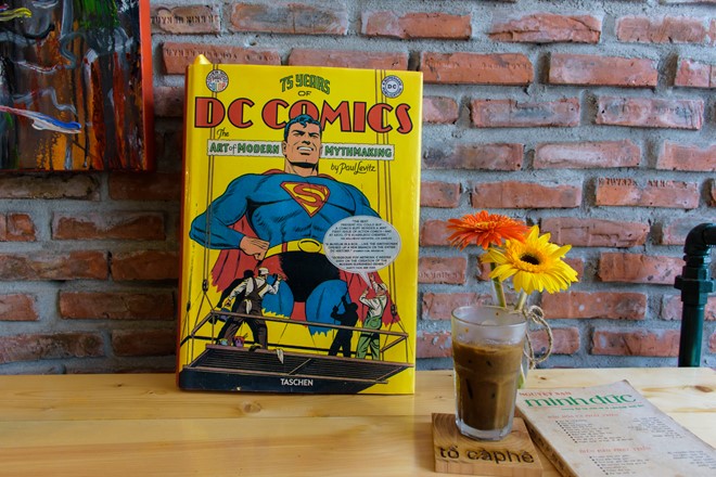 Đặc biệt, Tổ cà phê có một cuốn sách ngoại văn độc đáo 75 Years of DC Comics có giá lên tới gần 5 triệu đồng. Cuốn sách này được chủ nhân xem như báu vật, cũng là niềm quan tâm của nhiều bạn trẻ đến quán, nhất là các tín đồ của các siêu anh hùng như Superman, Batman, Flash, Wonder Woman…