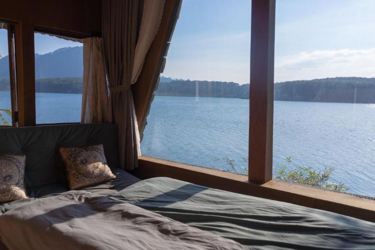 Là một khu resort giá rẻ ở Đà Lạt, nhưng đảm bảo ngay khi đặt chân tới không gian xinh đẹp này, bạn sẽ bị chinh phục hoàn toàn bởi những thứ xinh đẹp và bình dị của nơi đây. The Lake House Đà Lạt được tọa lạc ngay bên bờ hồ Tuyền Lâm, bao quanh là thiên nhiên tươi đẹp tạo nên bầu không khí rất trong lành. Những ngôi nhà nằm trên mặt hồ với thiết kế đơn sơ, ấn tượng rất thích hợp cho những du khách thích trải nghiệm và yêu thiên nhiên.