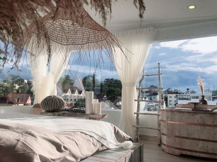 Được trang trí bởi những gam màu tươi mới, trẻ trung như trắng – xanh pastel, villa Đà Lạt giá rẻ Soho mang đến một thế giới thần tiên cực đẹp khiến cho hội chị em điên đảo.