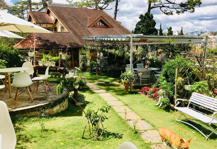 Sân vườn đầy hoa cỏ xanh rộng rãi, tha hồ chụp hình sống ảo, tổ chức tiệc