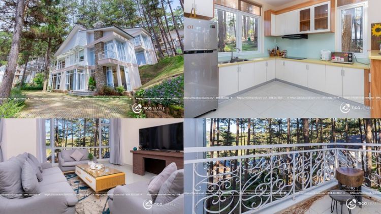 Villa Đà Lạt thiết kế theo phong cách hiện đại với diện tích khoảng 500m2, với 5 phòng ngủ bao gồm 4 phòng đơn có giường đôi và 01 phòng ngủ tập thể lớn với sức chứa lên đến 20 người, phòng khách sinh hoạt chung và ngủ, phòng ăn không thiếu thiết bị, dụng cụ nấu nướng nào.