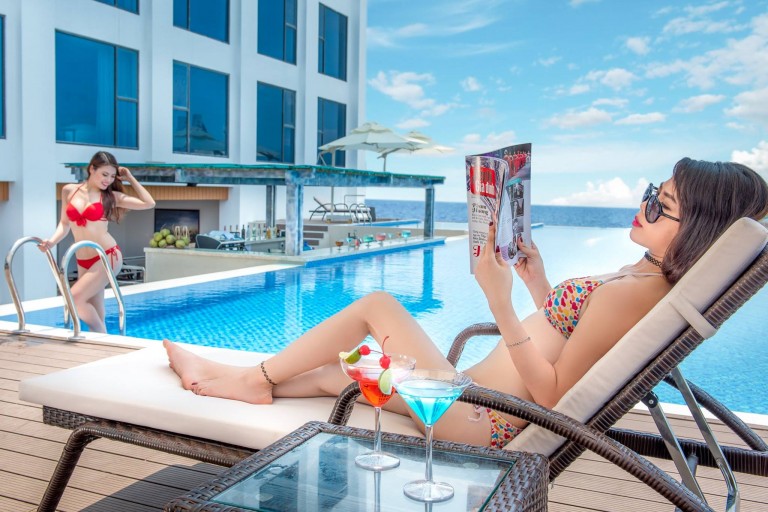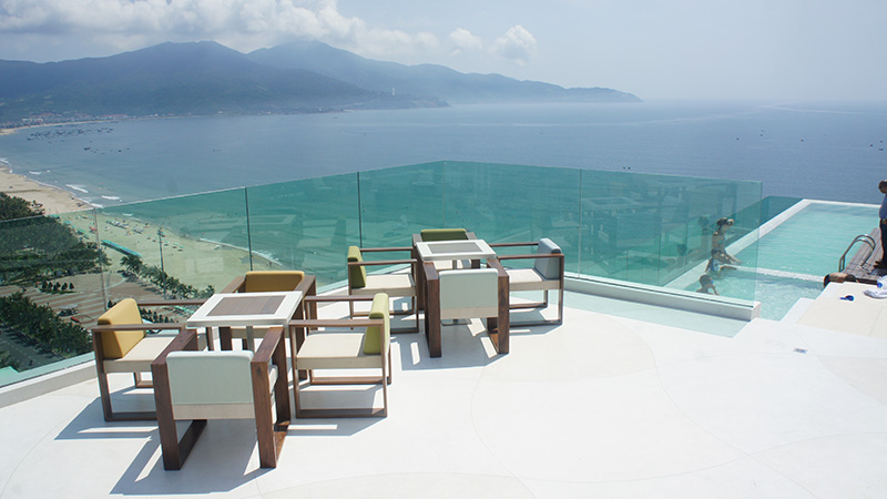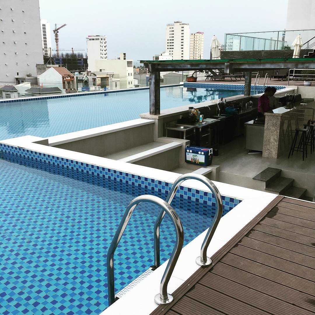 Đây cũng là khách sạn 4 sao đầu tiên tại Việt Nam có hồ bơi vô tận nằm trên tầng thượng với tầm nhìn “vô cùng đẹp” – sẽ không có từ ngữ nào có thể diễn tả được cảm xúc của bạn khi đứng trên tầng thượng của tòa khách sạn này và phóng tầm mắt hướng về phía xa xăm sâu thẳm đất trời kia.