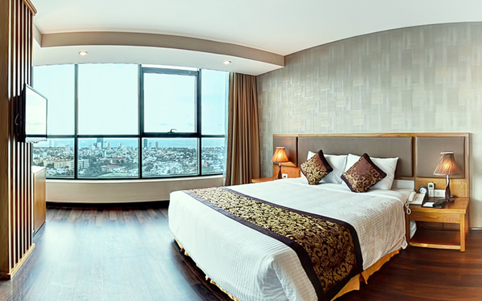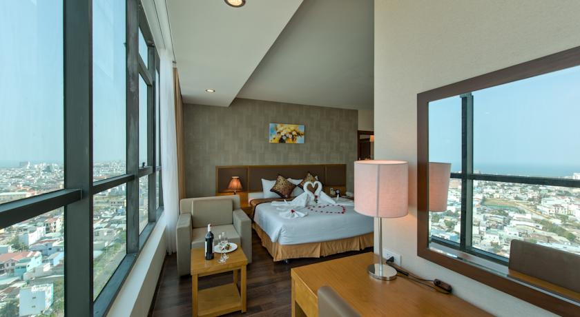 Chỉ cách sân bay quốc tế 10 phút đi xe, khách sạn này ngoài “view đẹp” còn có vị trí rất thuận tiện để khám phá các thắng cảnh “sống ảo” thú vị trong thành phố như nhà thờ Con Gà, chợ Hàn, tòa nhà Hành chính “trái bắp”…