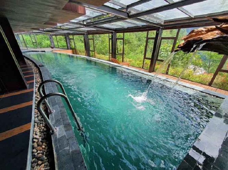 Thêm một điểm đặc biệt ở resort 4 sao Sapa này chính là bể bơi với tầm nhìn vô cực hướng thẳng xuống thung lũng Mường Hoa. Được thiết kế với hệ mái kính tự động, khi cần có thể mở ra, trở thành bể vô cực ngoài trời. Nước được giữ ấm nóng bởi hệ thống năng lượng lò hơi quanh năm.